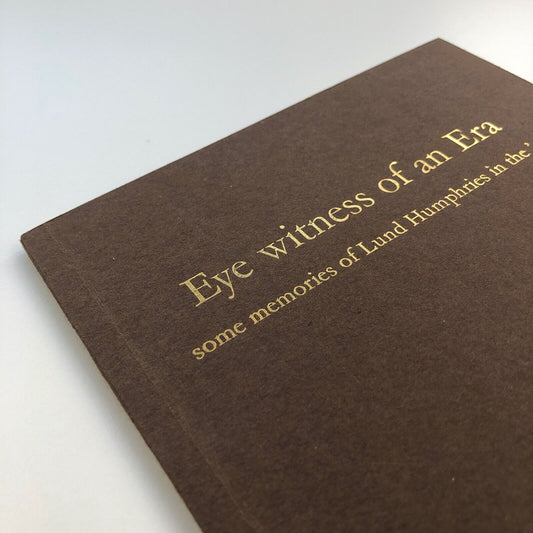 Eye witness of an Era - some memories of Lund Humphries in the '30s | Printed memento written by Anthony Bell from a Double Crown Club talk 3 December 1981 with an introduction by Nicolas Barker