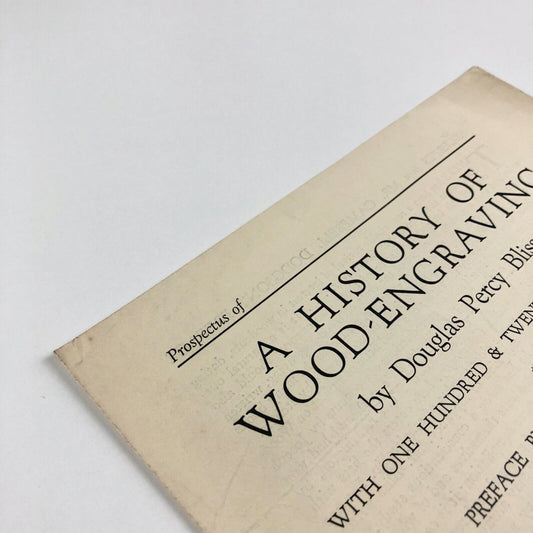 Prospectus for A History of Wood-Engraving by Douglas Percy Bliss | J.M. Dent & Sons Ltd, c .1928? | Cornish Brothers booksellers stamp