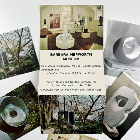 Promotional flyer for Barbara Hepworth Museum and five postcards c1976?