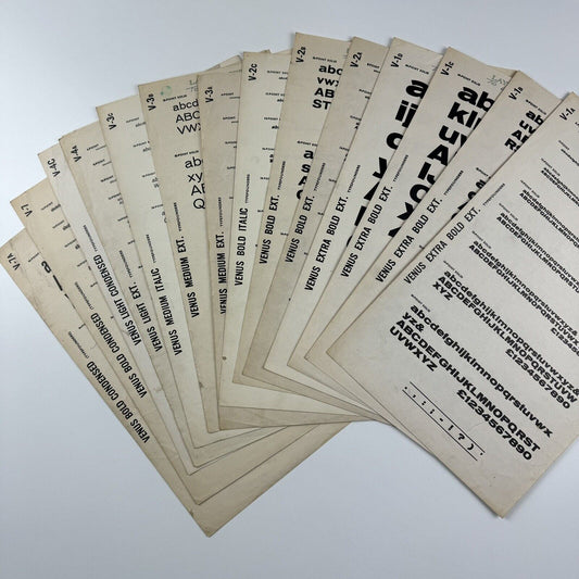 Typefounders - collection of 48 type specimen sheets | Venus, Grotesque, Folio, Fortune, News Gothic, etc