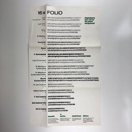Soldans type specimen – broadsheet and related letter | '16 x Bauer Folio' | West Germany, July 1966