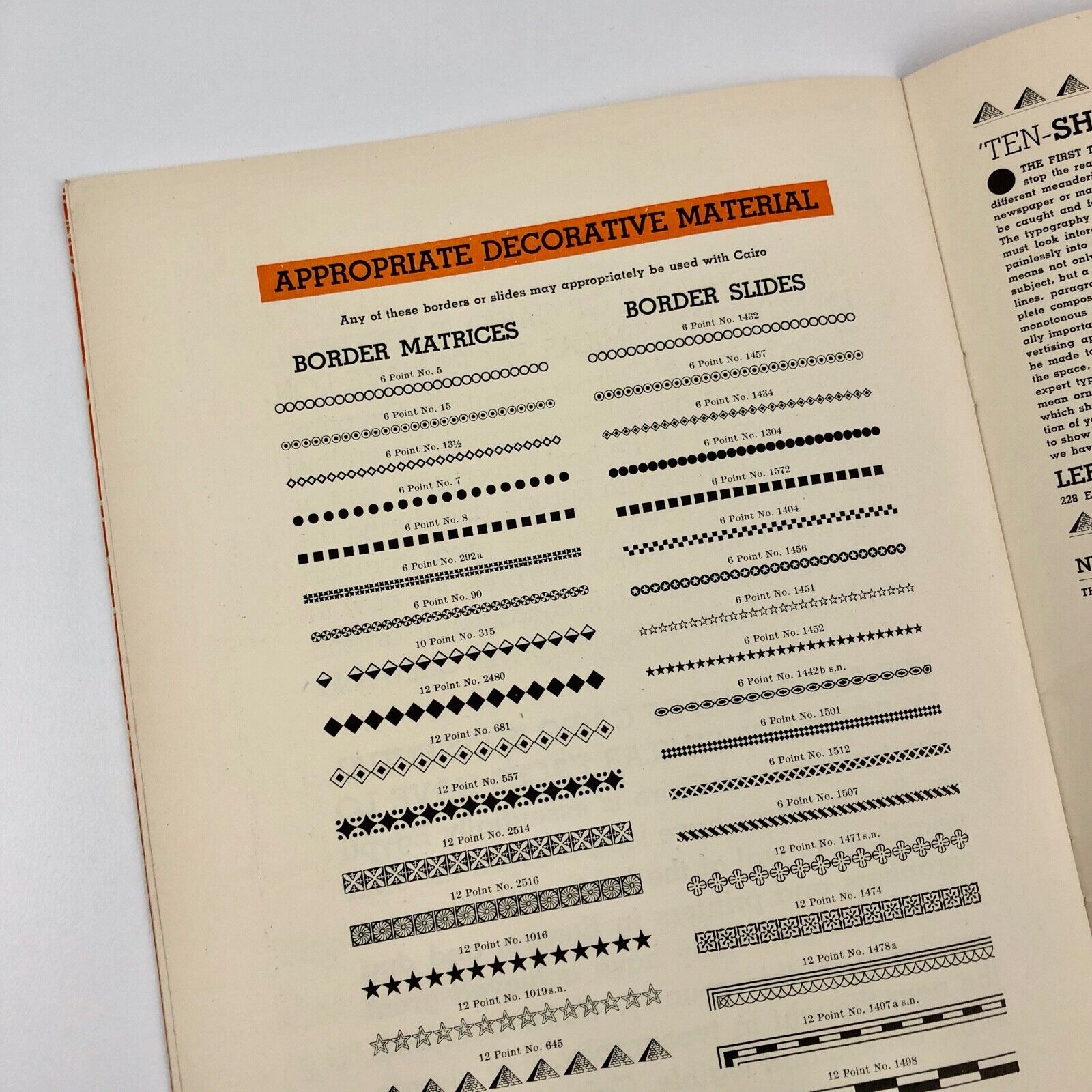 Cairo type specimen and information brochure by Intertype Corporation, Brooklyn, New York.
