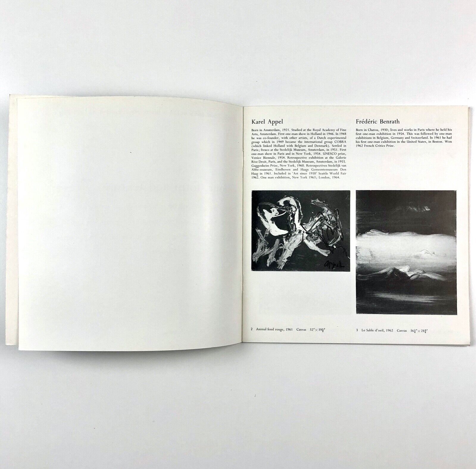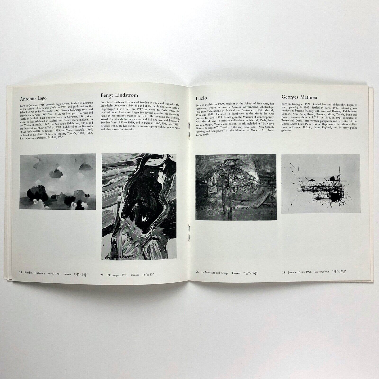 Includes works by AAppel, Benrath, Bluhm, Bogart, Brooker, Corneille, Crozier, Dubuffet, Erma, Feito, Francis, Hirst, Jenkins, John, Lago, Lindstrom, Lucio. Mathieu, Michael, Millares, Pericle, Phillips, Riopelle, Saura, Tàpies, Van Eyck, Wemaere.