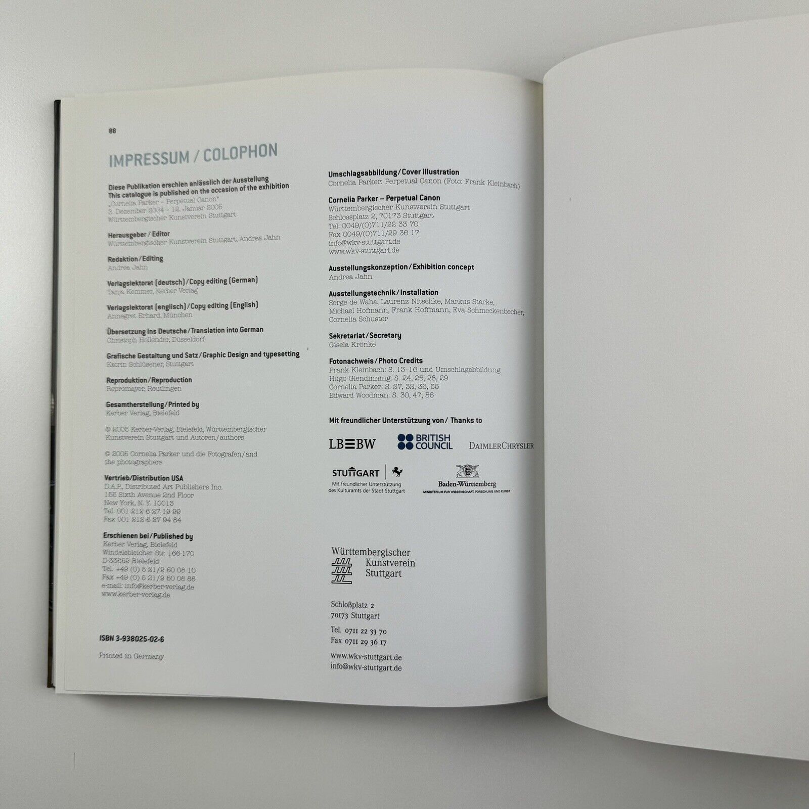 Catalogue to accompany the exhibition held at Württembergischer Kunstverein, Stuttgart between 3 December 2004 and 12 January 2005.