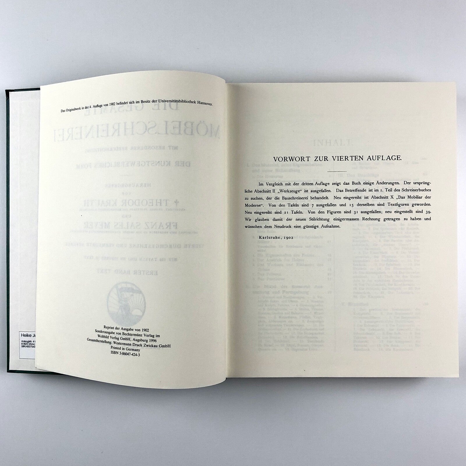 Das Schreinerbuch Die Möbelschreinerei | Th. Krauth und F.S. Meyer, 1996 reprint
