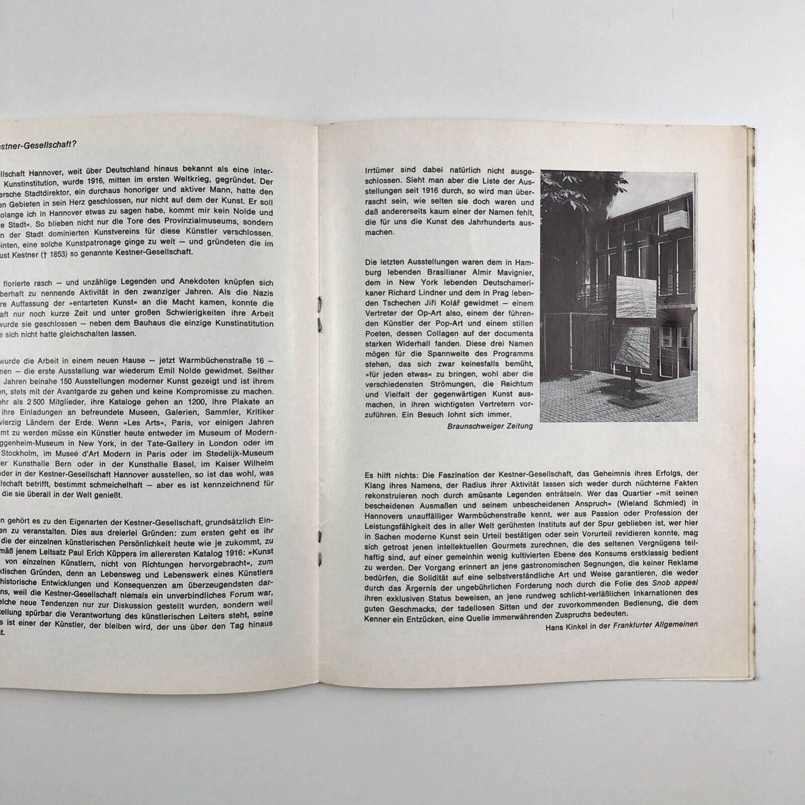 Promotional leaflet of Kestner Gesellschaft (The Kestner Society) Hanover to encourage membership to the Society.