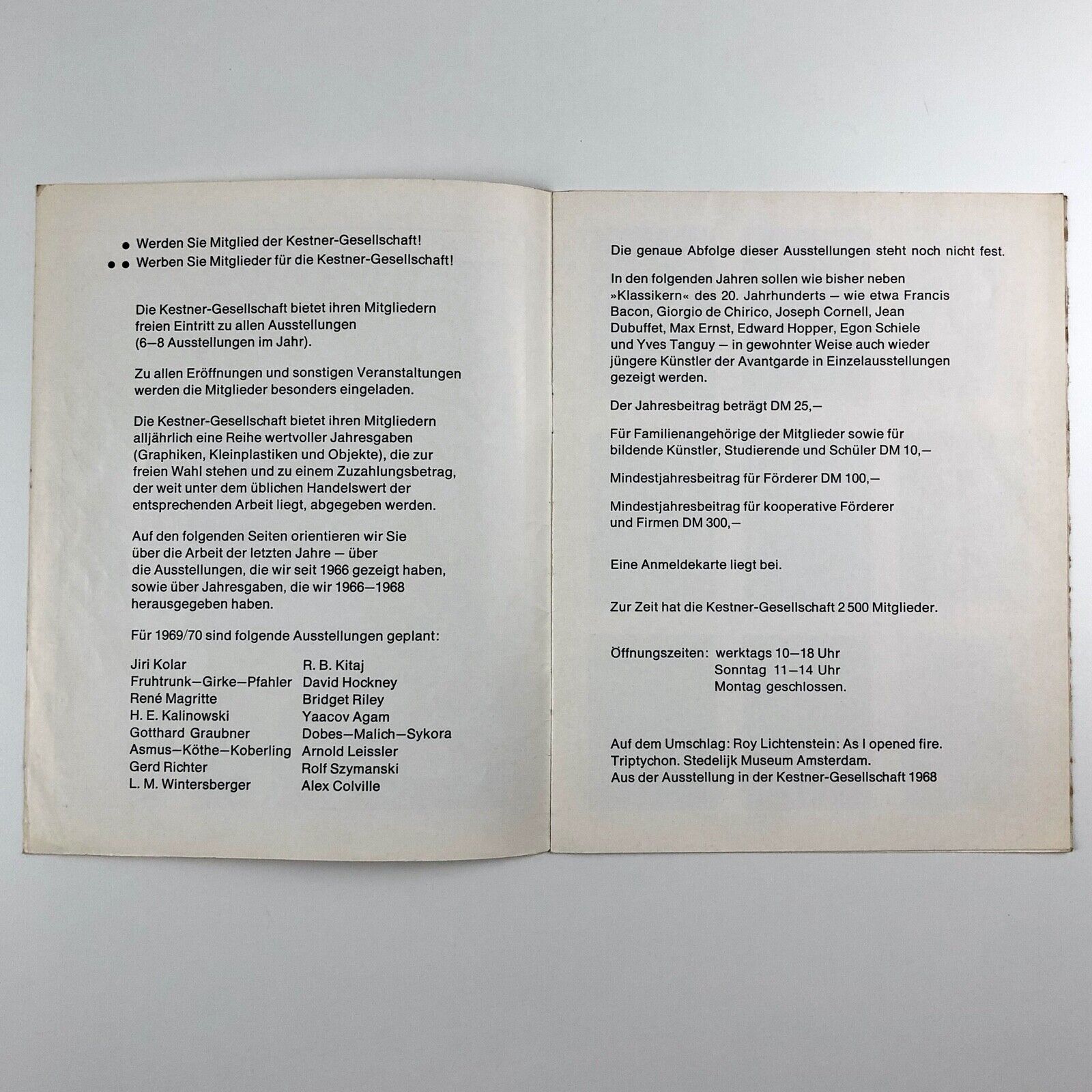 Die Kestner-Gesellschaft (Kestner Society) Hanover become a member leaflet c.1969 | Roy Lichtenstein cover