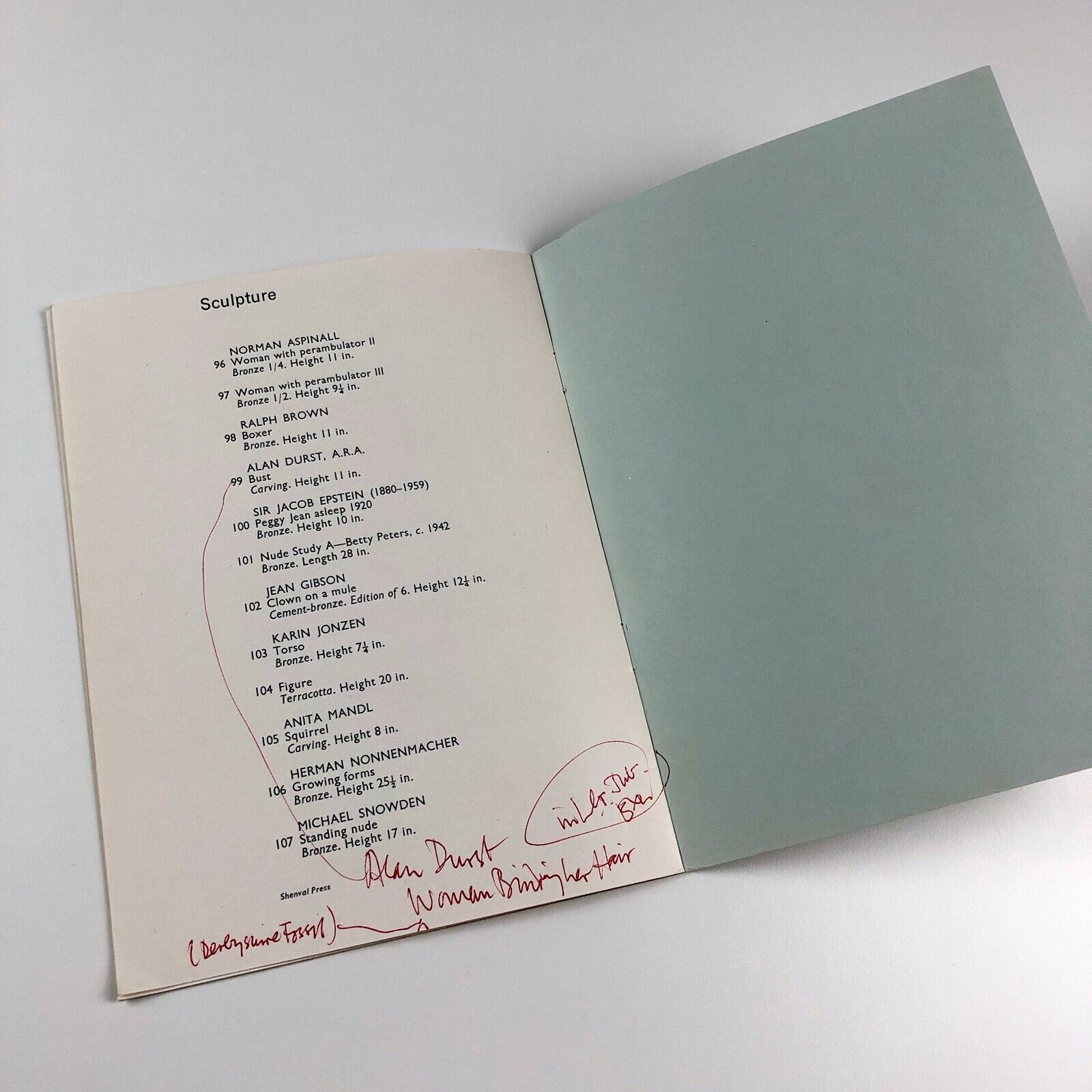 Catalogue to accompany the exhibition held at The Leicester Galleries, London between August and September 1954.
