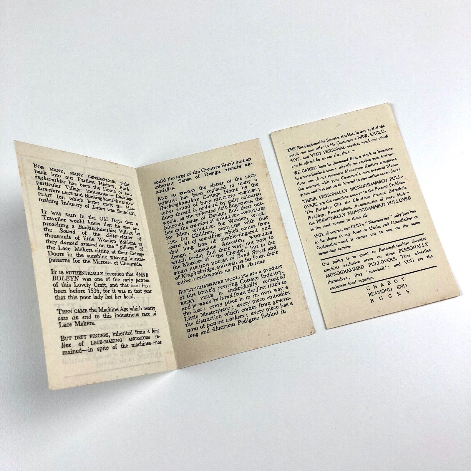 Buckinghamshire knitting, 4-page leaflet and 2-page insert.