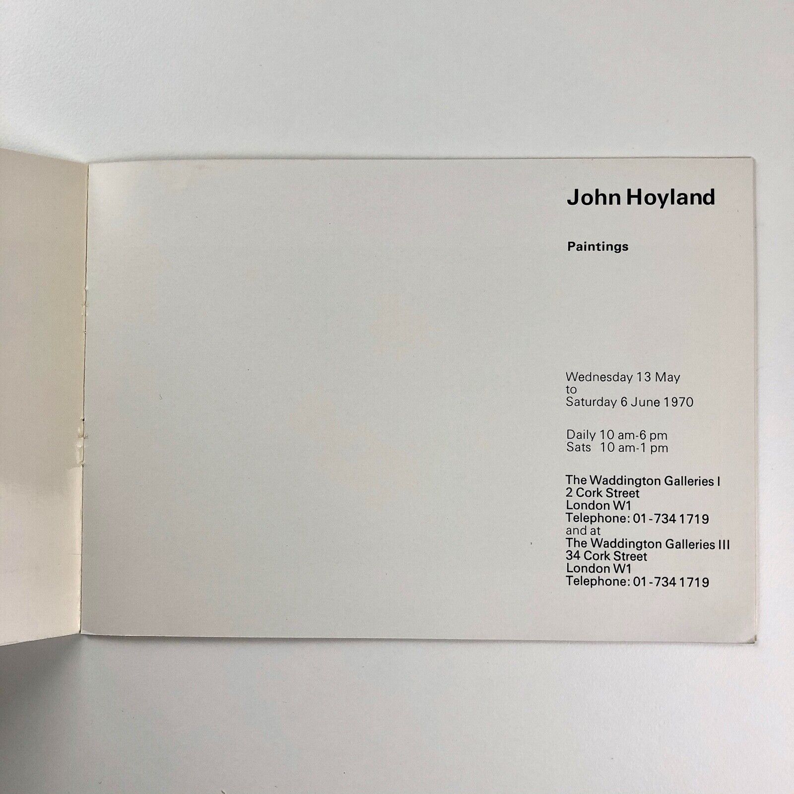 Catalogue to accompany the exhibition of John Hoyland Paintings held at The Waddington Galleries I and II between 13 May and 6 June 1970.