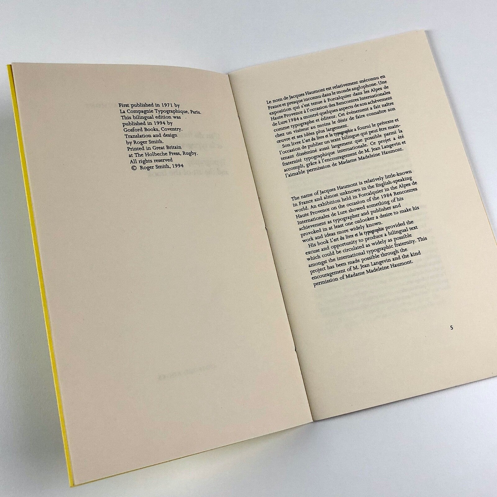 French/English 1994 edition. Translation and design by Roger Smith.